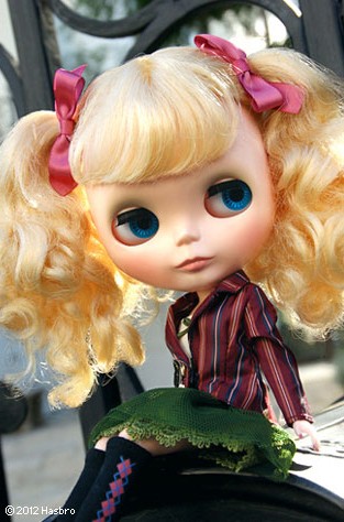 Neo Blythe University of Love *FREE SHIPPING FEE* *Shipping address are subject to the address of your Paypal transaction. I'm a student of the University of Love. I've learned to love all of the people from around the world and to take care of the earth and nature. I've also learned love for peace and to share with others. I'm ready to graduate and spread my message of love around the world! She wears a cute one-piece dress with cream cotton bodice and high empire waist. The skirt portion of the dress is made from moss green satin and is topped with 2 layers of tulle. Her tailored blazer has a unique stripe of dark red, green, beige and orange stripes. The blazers is embellished with an embroidered gold crown on the pocket. She wears knee high socks with mismatched pink and blue argyle pattern, topped with a lovely pair of cream and brown wingtip shoes! She has bright blonde hair with bangs. She has a curly perm which give her a glamourous look. Her pink ribbon hair elastics makes her look even more adorable! She has special green eye color which match her green eyeshadow and orange cheeks and lips. Face Type: Radiance Skin Type: Fair (natural skin) Make Up: Eyeshadow: Green, Lips: orangish pink, Cheeks: orangish pink Eye Colors: Light green (center special color), Blue (right), Pink (center), green (left) Hair Color: Blonde Manicure: Orange Set Includes: One-piece, blazer, 1 set of hair ties, socks, shoes, shorts, doll and stand. Release Date: November 16, 2012 We accept payment by PAYPAL, VISA and WESTERN UNION Thank you. Please don't hesitate to contact us at cctoyshop@yahoo.com.hk if you have any question about this product.