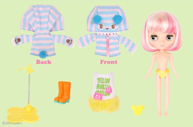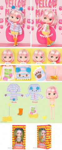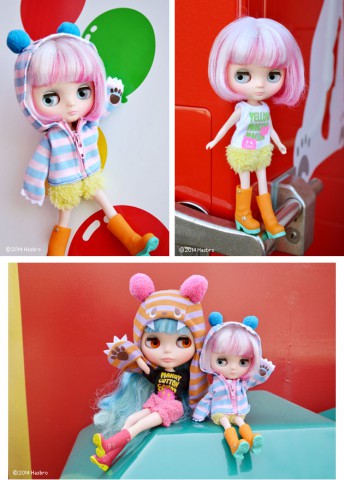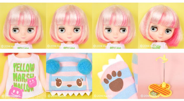 Middie Blythe doll Yellow Marshmallow *FREE SHIPPING FEE* Yellow Marshmallow is so excited to go to the amusement park with her best friend Mandy. They play together on all the rides and win prizes at the midway. At the end of the day she's excited to eat marshmallows. They had a very fun day! Yellow wears a fun new monster face hood! The pink and blue stripes are accented with cute, pom-pom ears, fangs and little claws. This sweet hood transforms her into a little fashionable monster. Her hands can go into the little pockets to become paws. Her shirt is printed with her name and cute pink monsters. Her shirt and shorts are a one piece jumper. The shorts portion is fluffy and soft. She has long orange boots with teal, contrasting soles and silver painted buckle. Yellow Marshmallow has a new style of hair for Middie! Her hair is silver on the surface but underneath is vivid pink. Her bob is styled with a soft curl to keep it's sweet shape. This cheerful and fun girl is ready to play! She has youthful makeup with light blue eyeshadow, and soft pink lips and cheeks. Skin Type: Natural Make-up: light blue eyeshadow, pink blush, and pink lips. Eye Color: Light blue Hair Color: two tones of silver and bright pink The set includes: Doll, one piece jumper, hood, boots, underpants and stand. Release Date: April 18, 2014 We accept payment by PAYPAL, VISA and WESTERN UNION Thank you. Please don't hesitate to contact us at cctoyshop@yahoo.com.hk if you have any question about this product.