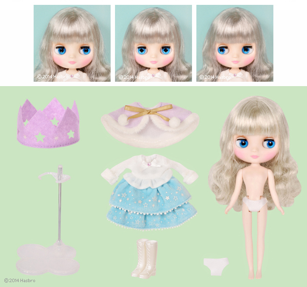 Middie Blythe doll Twinkle Princess *FREE SHIPPING FEE* *Shipping address are subject to the address of your PayPal transaction. When you wish upon a star, your dreams are going to come true! Here is the illustration for the upcoming Middie Blythe ”Twinkle Princess”! The winter sky shimmers with a billion far away lights. Whisper a wish to them, and they will grant it! I know they hear me, and I know my dreams reached them! Twinkle Princess is wearing an outfit that looks like it fell out of the night sky. Her star-sprinkled dress and fluffy fur coat make her fit to take a walk on the clouds in the breezy evening air. Her star printed dress comes with a layered skirt with pom-pom blades. Her light purple cape and cuffs pair wonderfully with her warm fur coat. Her star crown is slightly over sized, and she is wearing lace up boots. Her hairstyle is a long and permed silver with bangs, her eye shadow is brown, and her cheek and lips are pink. Her eyes are blue, and her face color is snow. * Please note design image may differ from the final product. Release date: 12 December 2014 We accept payment by PAYPAL, VISA and WESTERN UNION Thank you. Please don't hesitate to contact us at cctoyshop@yahoo.com.hk if you have any question about this product.