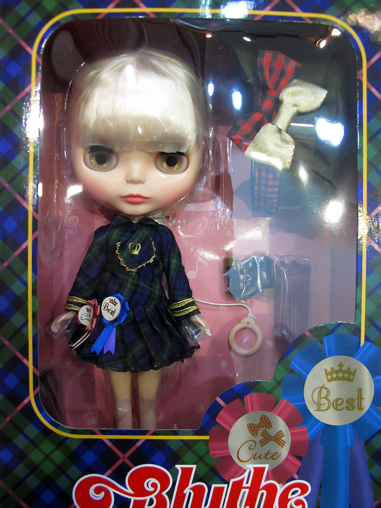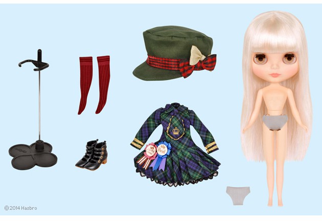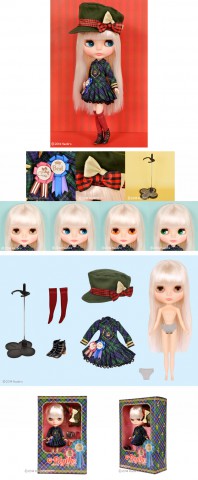 Neo Blythe “Cadence Majorette” is the new military chic girl! *FREE SHIPPING FEE* It's time to show off your special baton twirling at the parade! Wearing your sharp costume you feel sharp and proud. Watch her twirl the baton around and around! The elegant combination of girly and military style express the lovely style of majorette for Cadence. The drop waist of her uniform is accented with lovely pleats and a sharp collar and cuffs. The deep purple and green check dress show her spirit along with the two accenting ribbons. She has striped socks and four strap shoes. Her fun cap really tops off the outfit with a unique military flare. She has long, white hair with bangs. She has natural makeup with brown eyeshadow, and pink cheeks and lips. She has special light brown eye chips facing forward. She has a Radiance + face in fair color. Face Type: Radiance + Skin: Fair Makeup: Brown eyeshadow, pink lip and blush. Eye Color: Brown, blue, orange and green. Hair Color: Off White The Set Includes: Doll, dress, hat, shoes, socks, shorts, and stand. Release Date: October 17, 2014 We accept payment by PAYPAL, VISA and WESTERN UNION Thank you. Please don't hesitate to contact us at cctoyshop@yahoo.com.hk if you have any question about this product.