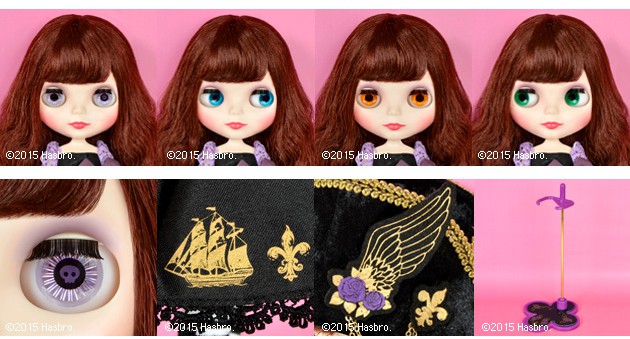 Hasbro Neo Blythe Sally Salmagundi *FREE SHIPPING FEE* *Shipping address are subject to the address of your PayPal transaction. Get dressed for the Pirates Ball! Neo Blythe Sally Salmagundi is here! Tonight is the international Pirates Ball! I gotta look good if I'm there to represent my dad whose a captain! Sally Salmagundi wears black and purple with golden accents, using cute accessories in a mature way. The sleeve uses purple lace, and the hem is adorned with black lace and a printed design of a ship and a lily. The waist is wrapped with a large chiffon ribbon, creating an elegant effect. Her trademark pirate hat and eye patch are wonderfully designed as well! Her hat is decorated with a feathered purple rose and gold trimming. Her heart shaped eye patch is fake leather. Her purple rose, lace choker, bordered tights and quadruple strapped shoes complete her look. Her hairstyle is a lightly permed long with bangs, that is a dark brown with a slight red tint to it. Her eye shadow is purple, her cheeks and lip are rose pink. One pair of front facing eye chips are a special purple color, which the right eye has a printed skull on it. Her face type is Radiance+, her face color is cream, and her stand is purple. Face type: Radiance+ Skin type: Cream (pale) Make up: Eye shadow: Purple, Lip: Rose pink, Cheek: Rose pink Eye color: Purple (front facing, special, with a skull print on one eye), Blue (right), Orange (front), green (left) Hair color: Reddish dark brown Eye lashes: default Ear rings: N/A Manicure: N/A Set includes: doll, dress, hat, eye patch, choker, tights, shoes, short stand Release Date: March 13th, 2015 (Fri) We accept payment by PAYPAL, VISA and WESTERN UNION Thank you. Please don't hesitate to contact us at cctoyshop@yahoo.com.hk if you have any question about this product.