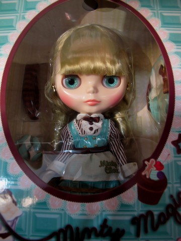 Hasbro neo Blythe Minty Magic *FREE SHIPPING FEE* *Shipping address are subject to the address of your PayPal transaction. Waiting on you! Announcing the final specifications for Neo Blythe Minty Magic! This chocolate café has the most delicious chocolate drinks and the cutest uniforms! Welcome to Neo Blythe Minty Magic! The mint and chocolate sweets are the local favorite for this cafe. The secret to Choco Cafe's success is the shop staff that looks great carrying the home made sweets on her tray! I really recommend the hot chocolate with vanilla whip cream and mint marshmallows on top. Add some ice cream and make it a mint chocolate float! Enjoy! Minty Magic's fashion is a combination of chocolate brown, mint green, and vanilla white. with gold accents. The dress is made to look like a base of chocolate, with a mint chocolate print jumper skirt, and a small apron. The cuffs on the dress, and the lace on the lapels, collar, and the trimming on the skirt is in a cream motif, with the jumper skirt print and gold lining, the Mint Choco embroidery on the apron add such cute detail to the outfit! The accessories are a frill and buttoned head dress, golden ribbon ear rings, bordered socks, and a special mint green and white pair of boots. Also includes a cake box! Her facetype is Radiance+, and her face color is cream. Her hair is blonde, and cut short at the bangs. Her eyeshadow is brown, and her eye lashes are a default brown. Her cheeks and lips are a salmon pink. Her special eye chips are mint green, and brown for the front and left facing eyes, respectively. *The specifications are subject to change. Face type: Radiance+ Skin type: Cream Make up: Eye shadow: Brown, Lips/Cheeks: Salmon pink Eye color: Orange (right), Blue (front), Light Brown (left, special), Mint Green (front, special) Hair color: Blonde Eye lashes: Light brown (default shape, special color) Ear rings: Golden Ribbons Manicure: N/A Set includes: doll, dress, jumper skirt, apron, head dress, ear rings, knee high socks, shorts, shoes, cake box, stand Release Date: January 22nd, 2016 We accept payment by PAYPAL, VISA and WESTERN UNION Thank you. Please don't hesitate to contact us at cctoyshop@yahoo.com.hk if you have any question about this product.