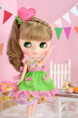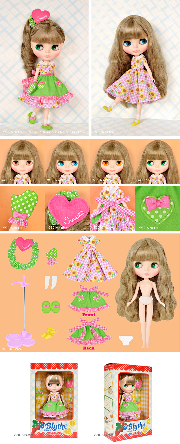 Neo Blythe “Henrietta’s Home Party” illustration *FREE SHIPPING FEE* *Shipping address are subject to the address of your PayPal transaction. Bring your favorite special dish, and let’s enjoy a nice time! Each person will bring their most famous dish and we will have a lovely potluck party. The casserole I made today is the best cheese. I’m so excited for everyone to try it! Getting ready for the party requires the right outfit. Her apron and accessories make for a cute looking hostess. Her green check, and sunflower dress is coordinated perfectly with her cute apron with heart shaped pocket. Her hair tie has a huge heart shape and goes well with her slippers and mittens. She has pretty yellow strap pumps for going out. She has long, light brown hair set in a loose perm with straight bangs. She wears green eye shadow with pink lips and cheeks. She has defult eye colors of pink, blue, orange, and free. She has a Radiance + face with fair skin. Face Type: Radiance + Skin Type: Fair Make-up: Green eyeshadow, pink lips, pink cheeks Eye Color: Pink, Blue, Orange, Green Hair Color: Light Brown The set includes: Doll, dress, apron, hair tie, mittens, socks, slippers, shoes, underpants, and stand. Release Date: July 15, 2016 We accept payment by PAYPAL, VISA and WESTERN UNION Thank you. Please don't hesitate to contact us at cctoyshop@yahoo.com.hk if you have any question about this product.