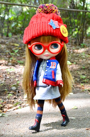 Carpe Diem! Work hard play hard with Neo Blythe Varsity Dean! *FREE SHIPPING FEE* *Shipping address are subject to the address of your Paypal transaction. I love my letterman jacket! Neo Blythe Varsity Dean final specs are here! Varsity Dean is a sporty girl who her friends consider to be one of the most well dressed at school. She wears her team jacket with ease and style, and she's a great student too. She's a positive person with a lot of activities! The most important item in her wardrobe is her letterman jacket. The jacket has a blue, red, and white coloring and large B emblem with a star mark. Her hoodie dress reaches her knees and has a large front pocket. The numbers 623 (Blythe's birthday) are printed on the front. On her sleeves, a red and blue pair of stripes. Varsity Dean has a lot of accessories! Her red knit hat with the colorful pompoms is decorated with an american flag star and smilie face pin. Her circle glasses are thick framed and red. Her tights are brown and navy, and she wears brown engineer boots. Her light brown hair is straight with bangs. Her facetype is Radiance+, her face color is fair. Her make up consists of light brown eyeshadow, salmon pink cheeks. and pink lips. One of her front facing eye chips are a special light brown color. Her stand is dark blue (17.5cm tall) Facetype: Radiance+ Skin Type: Fair Make up: light brown eyeshadow, pink lips, salmon pink cheeks Eye color: Orange (front), Blue (right), Light brown (front, special), Green (left) Hair color: light brown Earrings: n/a Manicure: n/a Eyelids: default Eyelashes: default Set includes: doll, dress, jacket, hat, glasses, tights, shoes, shorts, stand Available 2016 Oct. 21st (fri) We accept payment by PAYPAL, VISA and WESTERN UNION Thank you. Please don't hesitate to contact us at cctoyshop@yahoo.com.hk if you have any question about this product.