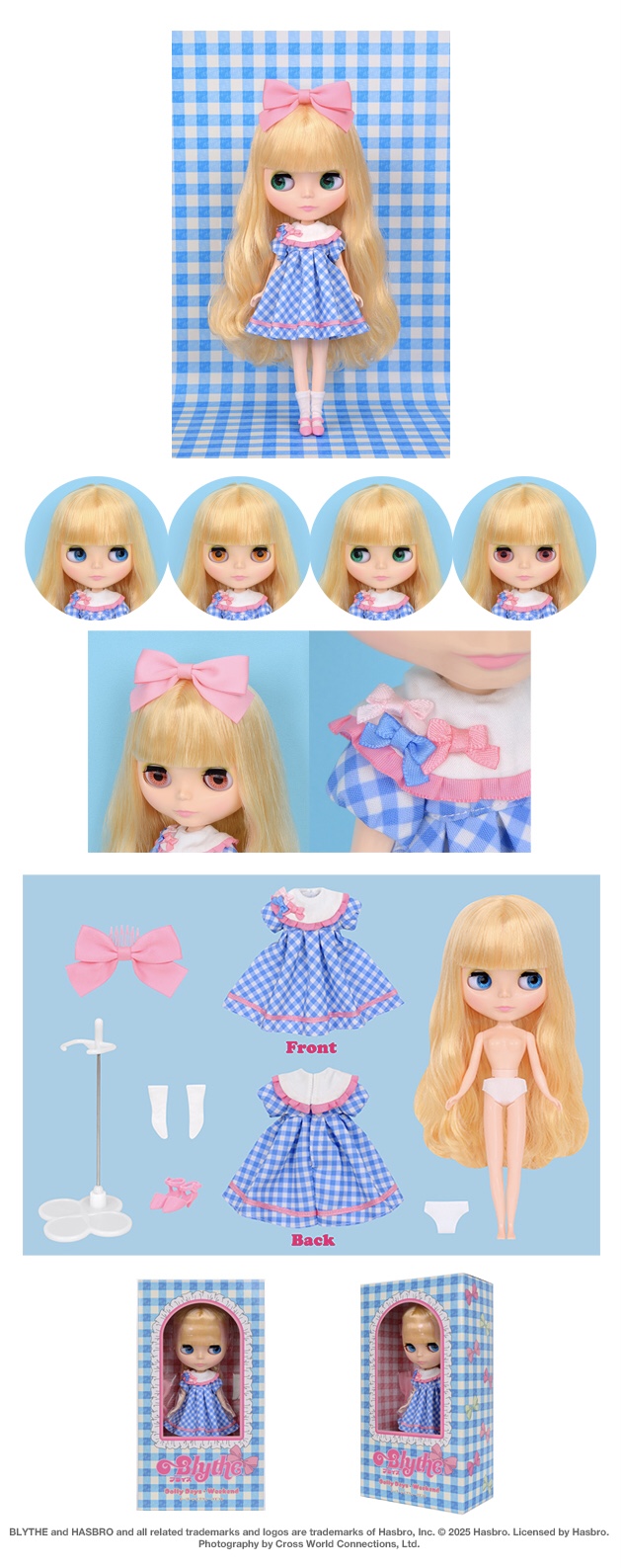 Neo Blythe “Dolly Days – Weekend” Final Specs! *FREE SHIPPING FEE* *Shipping address are subject to the address of your PayPal transaction. My weekdays are full of tasks that keep me busy, but my weekends are a sweet escape filled with activities I truly enjoy. It’s the weekends I always look forward to! Get ready for a fun weekend together! ♪ The “Dolly Days - Weekend” collection is here, featuring a cheerful and appealing color combination of blue and pink. This dress showcases a playful and charming look with its large ribbon and oversized yoke, adding delightful detail. Her softly permed long hair offers the perfect opportunity to try out various hairstyles. Have plenty of fun together! Face Type: Radiance Evolution Face Color: Fair Makeup Eyeshadow: Vintage green Lip: Pink Blush: Pink Eye Color: blue (right), orange (front), green (left), pink (front) Eyelid: Default Eyelashes: Default/Black Hair Color: Blonde Piercing: None Manicure: None Set Contents Doll, Dress, Hairaccessory, Socks, Panties, Shoes, Stand (waist support) Release Date: Expected August 29, 2025 We accept payment by PAYPAL, VISA and WESTERN UNION Thank you. Please don't hesitate to contact us at cctoyshop@yahoo.com.hk if you have any question about this product.