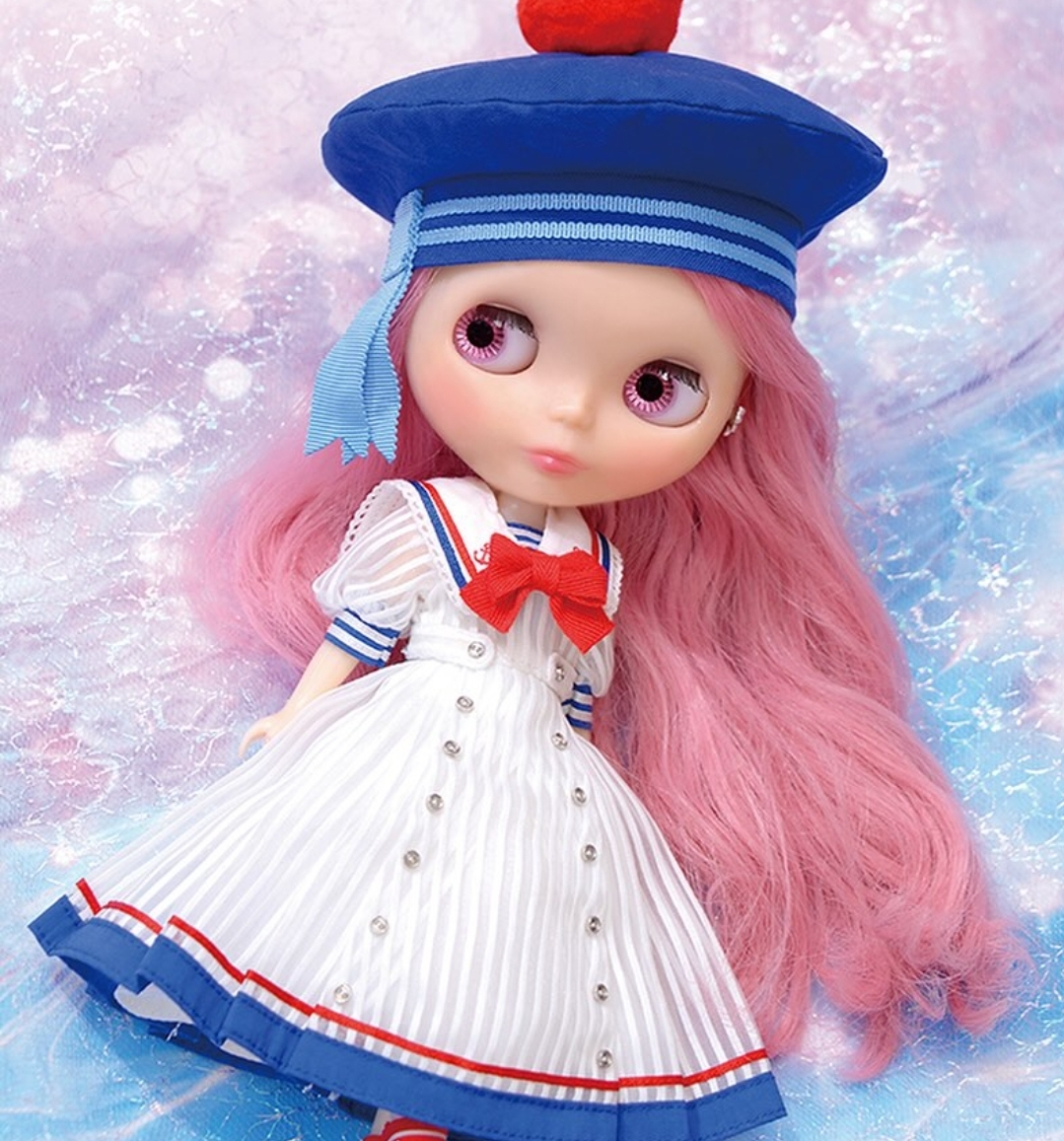 Announcement of the final specifications for the CWC Limited Edition Neo Blythe “Sailing Dominique”. *FREE SHIPPING FEE* *Shipping address are subject to the address of your PayPal transaction. On sunny weekends, I always head to the Grand Basin pond in the Luxembourg Gardens. I rented a little antique sailboat and let it drift across the water. When it nears the pond’s edge, I give it a gentle nudge with a long stick to send it back on course—it’s so much fun! Hi ho! All around me, children are just as excited, playing the same game! Dominique of the "Voiliers du Luxembourg" looks lovely in her fresh, breezy marine style. Dominique's white dress is perfect for a sunny, peaceful day. Made of a light, striped fabric, it has a sweet, subtle sheerness. The square sailor collar is accented with deep blue and red lines and a cute anchor motif, while a little red ribbon at the neckline adds a charming final touch. The skirt has pretty pleats that create a soft, flared silhouette, with matching lines at the hem to tie the whole look together. For a fun, new look, she can switch into a sweet blouse and culottes! The blouse has soft, voluminous sleeves with gathered cuffs, and the yacht-print fabric and striped tie give it a cheerful sailor-inspired feel. The culottes are so playful with their attached suspenders, making her look ready for a little adventure! Dominique's accessories are just as adorable. She wears a blue beret with a bright red pom-pom and carries a bag that looks like a life buoy. Her red socks have cute little anchor motifs, and her shoes are a stylish black with four straps. Even her eye-change charm has a tiny yacht on it! Her makeup is gentle and highlights her charming personality, and her hair is a beautiful new shade of mauve pink, giving her an elegant, Parisian-inspired flair. Face Type: Radiance Evolution Face Color: Translucent cream Makeup -Eyeshadow: Taupe Pink -Lips: Pink (with a plump shape) -Blush: Pink Eye Colors (All Special Colors) -Gray (right) -Light blue (front, with hologram) -Light magenta (left) -Aqua green (front) Eyelids: Taupe Pink (mold color) Eyelashes: Special type / Black Hair Color: Mauve Pink (new color) Earrings: Yes (Silver ribbon-shaped) Manicure: Yes (Pink beige) Set Includes: -Doll, dress, blouse, culottes, hat, petticoat, socks, bag, earrings, shorts, shoes, stand (waist support) Release date: Monday, September 29, 2025 We accept payment by PAYPAL, VISA and WESTERN UNION Thank you. Please don't hesitate to contact us at cctoyshop@yahoo.com.hk if you have any question about this product.