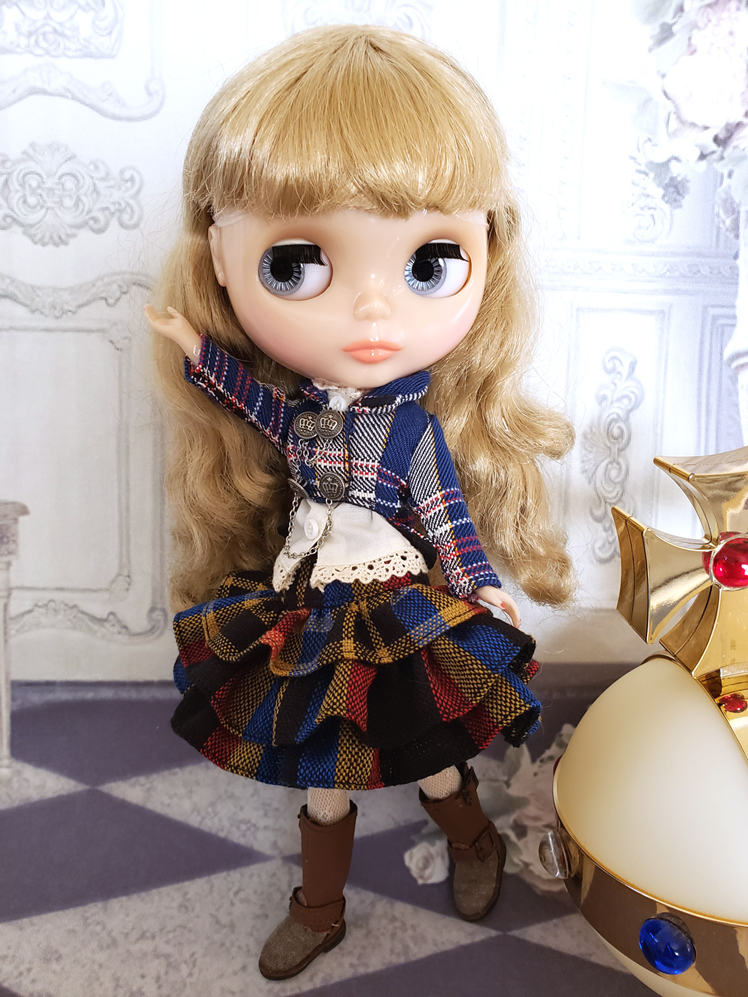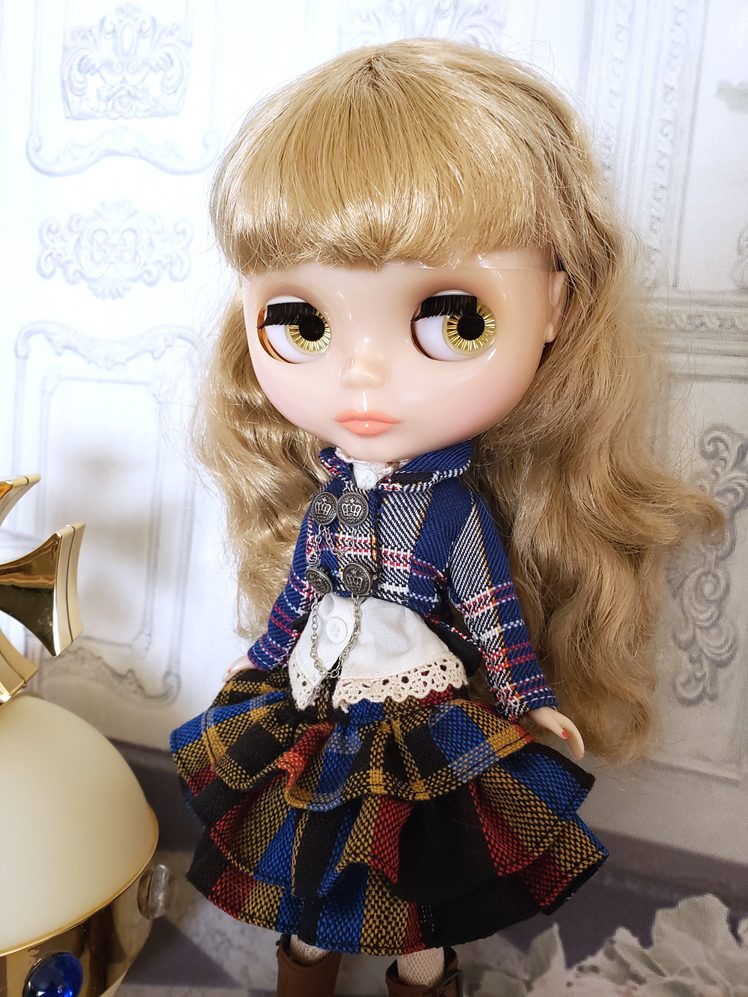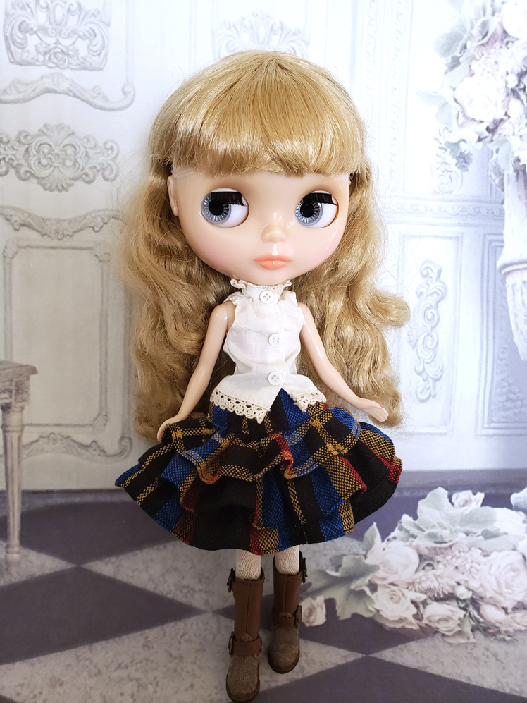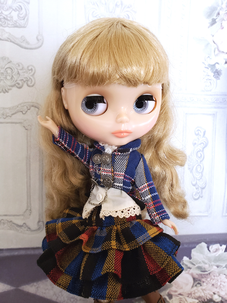 Neo Blythe doll blue plaid dress set (blue plaid jacket, ivory sleeveless shirt and yellow blue plaid layer skirt) Total 3pcs in this items. We accept payment by PAYPAL, VISA and WESTERN UNION Thank you. Please don't hesitate to contact us at cctoyshop@yahoo.com.hk if you have any question about this product.