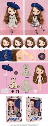 Leave it to me if it’s about the music! Neo Blythe “Musical Trench” final specifications announced. *FREE SHIPPING FEE* *Shipping address are subject to the address of your Paypal transaction. “ I love music and I am an expert at music. My favorite thing is listening to classical music flowing from and old record received from my grandma. I love listening to live music, so let’s go to the concert together! Surly you will be a fan of classical music too.” The chic and mature coloring of her clothing is punctuated with note and record motifs. There are cute illustrations of piano, violin, saxophone and trumpet along the fluffy a-line skirt with frills and girlish trench coat. The coat buttons are sweet heart shaped. She has select fashion accessories. Her bare hat has dot patterned tulle on the surface with elegant design and acoustic note symbols. Her shoulder bag is shaped like a fun record. She wears heart shaped golden ear studs. She wears strap shoes with cute tulle socks. She has a Radiance Renewal face type in the color “Fair”. Her light brown hair is long with a loose perm and fashionable side part. She wears elegant makeup with brown eyeshadow, pink lips and pink cheeks. She has special light brown eyes in the front gaze. Face Type: Radience Renew Face Color: Fair Makeup: Brown eyeshadow, pink lip, pink cheeks Eye Color: Orange (front), blue (right), light brown (front, special color), Green (left) Hair Color: Light brown Earring: Gold colored heart studs Manicure: yes Set Includes: Doll, dress, coat, hat, earrings, bag socks, shoes, shorts and stand (17.5 cm) Scheduled Release Date: October 20 We accept payment by PAYPAL, VISA and WESTERN UNION Thank you. Please don't hesitate to contact us at cctoyshop@yahoo.com.hk if you have any question about this product.