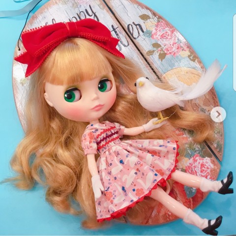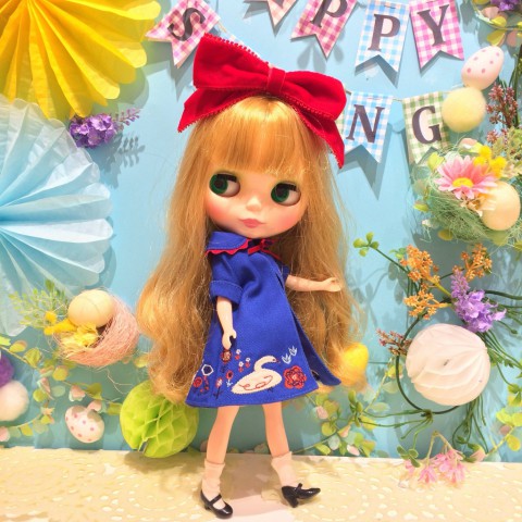 Neo Blythe Jillians Dream Final Specs! Come Take a Stroll Through the Streets of Ginza With Me *FREE SHIPPING FEE* In my dreams, I find myself in Ginza. The swan boats, the beautiful restaurants, the glittering lights as I walk down the crowded streets… I find myself nostalgic for the 60’s when I wake from those dreams, so I don my goose coat and make my way to the city. Jillian is going out to the city with her charming goose coat! Her dress is made with a geese printed fabric, smock embroidered with a low collar and gathered at the waist of the skirt. This dress is covered head to toe with an A line silhouette coat featuring the cutest pair of geese leisurely floating in a pond, surrounded by adorable flower appliqués. Her hair accessory is a red velvet ribbon, attachable by comb. Her gloves and socks are white, evoking a cleanly elegance. Her shoes are a pair of black, strap on loafers. Her face type is Radiance Renew, and her face color is Fair. Her light brown hair is lightly permed and cut straight across the bangs. One of her front facing eye chips are a special light blue. Face Type: Radiance Renew Face Color: Fair Makeup: Green eyeshadow, Pink lip, Pink cheek Eye Color: Light Blue (front *Special color), Blue (right), Orange (front), Green (left) Eyelid: Default Eyelash: Default Hair Color: Light Brown Earrings: N/A Manicure: N/A Set Includes: Doll, dress, coat, ribbon, gloves, socks, shoes, shorts, and stand (17 cm) Release date: April 20 (Fri), 2018 We accept payment by PAYPAL, VISA and WESTERN UNION Thank you. Please don't hesitate to contact us at cctoyshop@yahoo.com.hk if you have any question about this product.