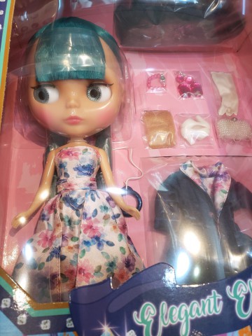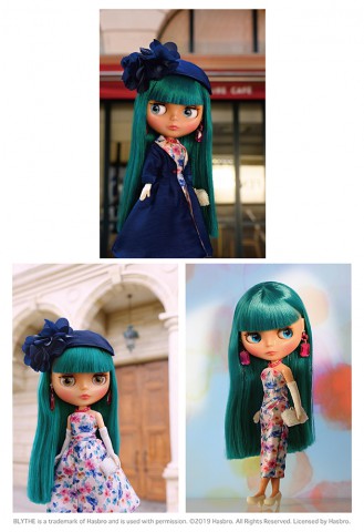 Hasbro Exclusive Neo Blythe doll Elegant Ellie *FREE SHIPPING FEE* *Shipping address are subject to the address of your PayPal transaction. Tonight is our night! Hasbro Exclusive Neo Blythe Elegant Ellie coming soon! I recommend watching Dreamy Eyes, starring Lucy! She’s an amazingly talented actress and my best friend, who I have supported from the very beginning. I can’t wait for the premier tonight, it’s going to be such a hit. Congratulations Lucy! The charming and lovable Lucy and her capable and excellent manager Ellie are the hit of their premiere. Ellie wears a satin full body dress covered in a flowery print which can be arranged in two different ways for a change in style. Keep it tight for a more mature look or add the skirt for a flowing, wide silhouette! The coat is made with navy shantung, made to softly envelope the silhouette of the skirt. The lining is made with the same material of the dress. Accessories include a pink accented rhinestone earring and a bead necklace, as well as a pair of long gloves, gold lame stockings and high heels to round out her formal look. Her face color is a tanned translucent latte. Her face type is Radiance Renew. Her hair is a vibrant blue green which goes well with her equally vibrant make up. Her eyeshadow is brown, with liner in her eyeline. Her eyelashes are a special dark brown which compliments her brown eyelids. Her cheeks are pink, with a soft magenta glow to her lips. Two of her eye chips are specially made; a front facing light brown, and a left facing light blue. Face Type: Radiance Renew Face Color: Latte Makeup: Brown eyeshadow, magenta lip, pink cheek Eye Color: Light brown (front), blue (right), green (front), light blue (left) Eyelid: Brown with brown eye liner Eyelash: Dark brown Hair Color: Blue Green Earrings: Pink rhinestones Manicure: Pink Set Includes: Doll, dress, overskirt, gloves, coat, head accessories, ear rings, necklace, bag, stockings, shorts, shoes, stand (stand length 13.8cm) Release date: September 27th, 2019 (fri) We accept payment by PAYPAL, VISA and WESTERN UNION Thank you. Please don't hesitate to contact us at cctoyshop@yahoo.com.hk if you have any question about this product.