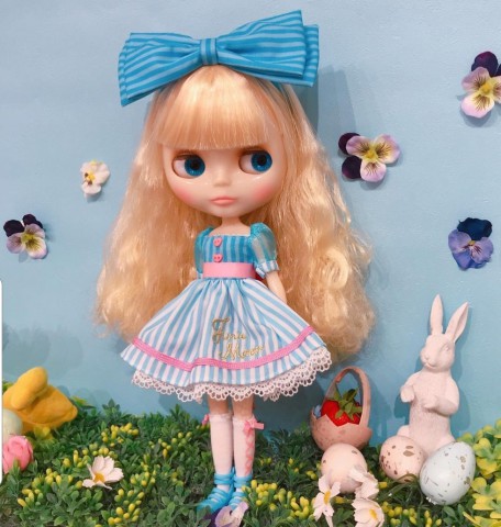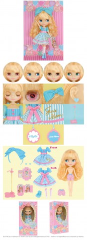 CWC Ex. Neo Blythe “Hello Again Junie Moonie Cutie” illustration announced! *FREE SHIPPING FEE* *Shipping address are subject to the address of your PayPal transaction. ※ We do not ship this item for local area (HK) and China※ We are delighted to announce that Junie Moonie Cutie, the popular cover girl for the Junie Moon shop, is back in a new way. In response to the many requests from her fans, she returns to the limelight in a new color way. Her updated name is “Hello Again Junie Moonie Cutie”. She’s fresh new girl with blue fashion point clothing! “Hello Junie! You are always so cute and kind. You are a special person who brings happiness to many people. We look forward to playing with you again! I will always cherish you for connecting my heart and mind.” The fashion of “hello again Junie Moonie Cutie” is a sweet pink and blue color coordination. The dress has light blue and blue stripes. The sleeves are sheer puff sleeves. The skirt is embroidered with the “Junie Moon” shop logo written by Blythe Creative Producer, Junko Wong. She has pink accent heart buttons, a big bow on the back and pink ricrac hem. Her fashion accessories include a large hair ribbon, blue heart-shaped earrings, high sicks with lace up ribbon print, and a pair of matching shoes. She wears pink and white striped bloomers underneath. Her face type is Radiance Renewal. Her face color is Translucent Cream. Her hairstyle is long, perm with fringe. Her hair color is blonde. She has brown eyeshadow with light brown eyelids. She las pink cheeks. Her lips are pink with a plump shape make up. She has brown front eyes, mint green left eyes, pink with a heart print center front facing, light blue right gaze. * She has four special colors in the same set, The eye change charm is printed with Blythe and Junie Moon logos. The accessories include a miniature-sized shopping bag and paper accessories for the doll packaging, so you can assemble and play with them! * Please note the design image may differ from the final image. Release Date: March 2021 We accept payment by PAYPAL, VISA and WESTERN UNION Thank you. Please don't hesitate to contact us at cctoyshop@yahoo.com.hk if you have any question about this product.