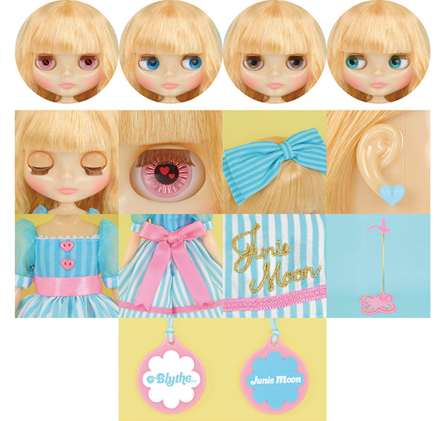 CWC Ex. Neo Blythe “Hello Again Junie Moonie Cutie” illustration announced! *FREE SHIPPING FEE* *Shipping address are subject to the address of your PayPal transaction. We are delighted to announce that Junie Moonie Cutie, the popular cover girl for the Junie Moon shop, is back in a new way. In response to the many requests from her fans, she returns to the limelight in a new color way. Her updated name is “Hello Again Junie Moonie Cutie”. She’s fresh new girl with blue fashion point clothing! “Hello Junie! You are always so cute and kind. You are a special person who brings happiness to many people. We look forward to playing with you again! I will always cherish you for connecting my heart and mind.” The fashion of “hello again Junie Moonie Cutie” is a sweet pink and blue color coordination. The dress has light blue and blue stripes. The sleeves are sheer puff sleeves. The skirt is embroidered with the “Junie Moon” shop logo written by Blythe Creative Producer, Junko Wong. She has pink accent heart buttons, a big bow on the back and pink ricrac hem. Her fashion accessories include a large hair ribbon, blue heart-shaped earrings, high sicks with lace up ribbon print, and a pair of matching shoes. She wears pink and white striped bloomers underneath. Her face type is Radiance Renewal. Her face color is Translucent Cream. Her hairstyle is long, perm with fringe. Her hair color is blonde. She has brown eyeshadow with light brown eyelids. She las pink cheeks. Her lips are pink with a plump shape make up. She has brown front eyes, mint green left eyes, pink with a heart print center front facing, light blue right gaze. * She has four special colors in the same set, The eye change charm is printed with Blythe and Junie Moon logos. The accessories include a miniature-sized shopping bag and paper accessories for the doll packaging, so you can assemble and play with them! Release Date: March 2021 We accept payment by PAYPAL, VISA and WESTERN UNION Thank you. Please don't hesitate to contact us at cctoyshop@yahoo.com.hk if you have any question about this product.
