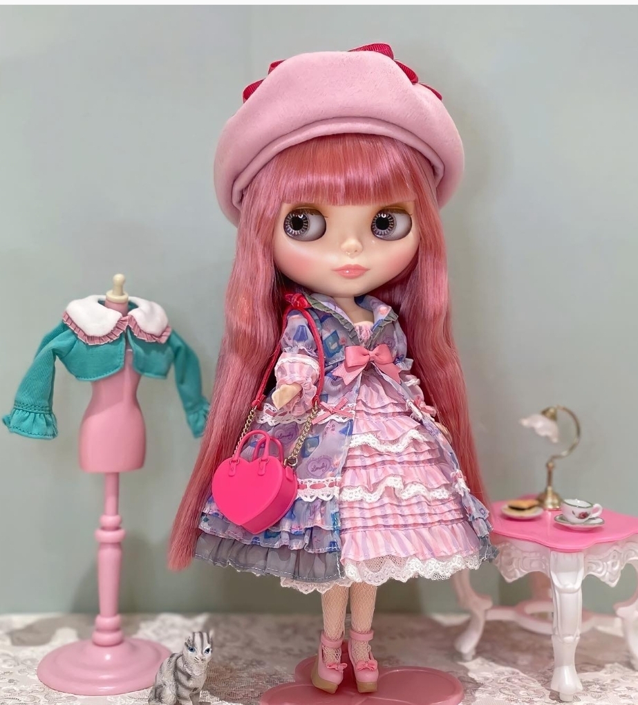 TOP SHOP exclusive Neo Blythe “Lovely Katherines Corner” *FREE SHIPPING FEE* *Shipping address are subject to the address of your PayPal transaction. Everyone who receives a present from Katherine will be happy. She always gives gifts to everyone, but But the best gift of all is Katherine's lovely smile, kindness, and warm hugs. Everyone loves Katherine so much! Lovely Katherine's Corner" fashion is coordinated with lovely items. The clothes are a pink and purple striped long-sleeved dress with ruffles, lace, pin tucks, and shirring. Sailor collar over-dress and a mint green cardigan are set to make the outfit more wearable♪ The over dress is printed with a pattern of gifts for friends. The top has a clean sailor collar, and the skirt is open from the center to reveal the underdress. It is decorated with lots of ruffles, lace and ribbons★. The base is a translucent light gray, which overlaps with the pink of the under-dress, creating a nuanced coloring. The cardigan is a short bolero type with a white fur collar. The sleeves gently extend to the wrists. Cute fashion accessories were also selected. The pink beret is decorated with bunny ears on the back and ribbons and colorful pearl beads on the front of the top. The earrings are gold-colored and ribbon-shaped, and the heart-shaped bag has a short handle and shoulder strap. accented with gold chains and small ribbons. Panniers to shape the silhouette of the skirt, lace tights, and strappy shoes with bows on the toes. All of these items are the stuff of obsession! The face type is Radiance Evolution and the face color is cream. Hair is long and straight with bangs, pink (new color). Eyeshadow and eyelids (molded color) are brown, and eyelashes are a special brown with jagged tips. Blush and lips are baby pink. The eye colors are all special colors: blue-green (front), light blue (right), brown (front), and light purple (left). Nails are also baby pink. Face Type:Radiance Evolution Face color:Cream Eyeshadow:Brown, Lip: Baby pink, Blush: Baby pink Eye Color」Blue Green (front), Light Blue (right), Brown (front), Light Purple (left) *All special colors Eyelid:Brown(Molding color) Eyelashes:Special-specification brown (jagged type) Hair color:Pink *New color Piercing:Yes (ribbon type) Manicure:Baby pink Doll, dress (pink and gray), cardigan, hat, earrings, bag, petticoat, shorts, tights, shoes, stand (foot support type) Release date: Scheduled for 28 October 2022 We accept payment by PAYPAL, VISA and WESTERN UNION Thank you. Please don't hesitate to contact us at cctoyshop@yahoo.com.hk if you have any question about this product.