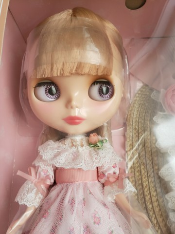Announcing the final specifications of CWC limited Neo Blythe “Coquette Lumiere”★ *FREE SHIPPING FEE* *Shipping address are subject to the address of your PayPal transaction. “Right now, I'm walking in the garden wearing my favorite coquette style. The beautiful flowers are in bloom, and the refreshing breeze feels so good. The sun's rays are a bit strong, so I’m carrying my favorite lace parasol. “Coquette Lumiere'' is a showcase for elegant, mature, and feminine fashion. The dress is pink and white and made of soft tulle and lace. This cute coquette ensemble is completed with a parasol and a dainty bonnet. The flower print dress is layered with a white tulle lace skirt, and the neckline and sleeves are also decorated with lace and ribbons. The bonnet is a gorgeously designed woven straw base decorated with lace, large ribbons and several types of artificial flowers. The parasol is made of transparent, rose-patterned lace. On her feet, Coquette Lumiere wears tulle socks and thick-soled one-strap shoes. The face type is Radiance Evolution and the face color is Fair. She has loosely permed, long pinkish-brown hair with bangs. She wears adult feminine makeup with a hint of melancholy and eye chips in nuanced colors! The eyeshadow and eyelids (molded color) are light brown, and the eyelashes are black with a special long outer corner. The bright pink blush starts at the center of the cheeks to below the eyehole. The lips are plump and have a clear cherry pink color on the inside and a light pink color on the outside to blur them. Eye colors include light blue (front), light purple (right), light gray (front), and light brown (left), all special colors set. [Face type] Radiance Evolution [Face Color] Fair [Makeup] Eyeshadow: Light brown, Lips: Clear cherry pink on the inside, plump mask with blurred pink on the outside, Cheeks: Pink [Eye Color] Light blue (front), Light purple ( right), light gray (front), light brown (left) *All special colors [Eyelids] Light brown (molding color) [Eyelashes] Special color black [Hair color] Pinkish brown [Earrings] None [Nail polish] Pink [Set contents] Doll, dress, bonnet, petticoat, drawers, socks, shoes, parasol, stand Release date: Friday, March 29, 2024 We accept payment by PAYPAL, VISA and WESTERN UNION Thank you. Please don't hesitate to contact us at cctoyshop@yahoo.com.hk if you have any question about this product.