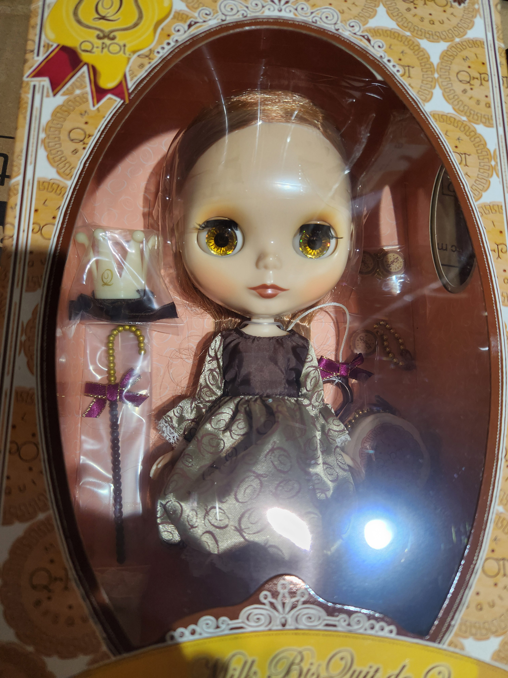 CWC Limited Edition Neo Blythe "Princess Milk BisQuit de Q-pot *FREE SHIPPING FEE* *Shipping address are subject to the address of your PayPal transaction. [ Face Type ] Radiance [ Skin Type ] Fair [ Make-up ] Eye shadow- orangy beige, Lips- dark orange, Blush- orangy beige [ Eye Color ] Moss green (right), brown (center / with "Q" logo), pink (left), and light blue (center) *All special color except pink / all horogrammed [ Eyelid ] Mocha [ Eyelashes ] Special [ Hair Color ] Mix of reddish and light brown [ Nails ] No Enamel [ Earrings ] 1 set [ The set includes ] Doll, dress, milk crown, biscuit earrings, biscuit necklace, biscuit bag, cane, socks, boots, underwear, and stand. Limited to 3000 dolls We accept payment by PAYPAL, VISA and WESTERN UNION Thank you. Please don't hesitate to contact us at cctoyshop@yahoo.com.hk if you have any question about this product.