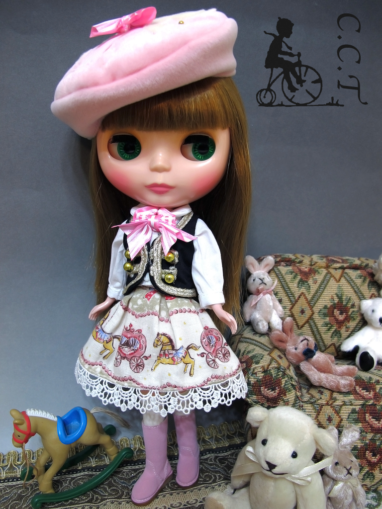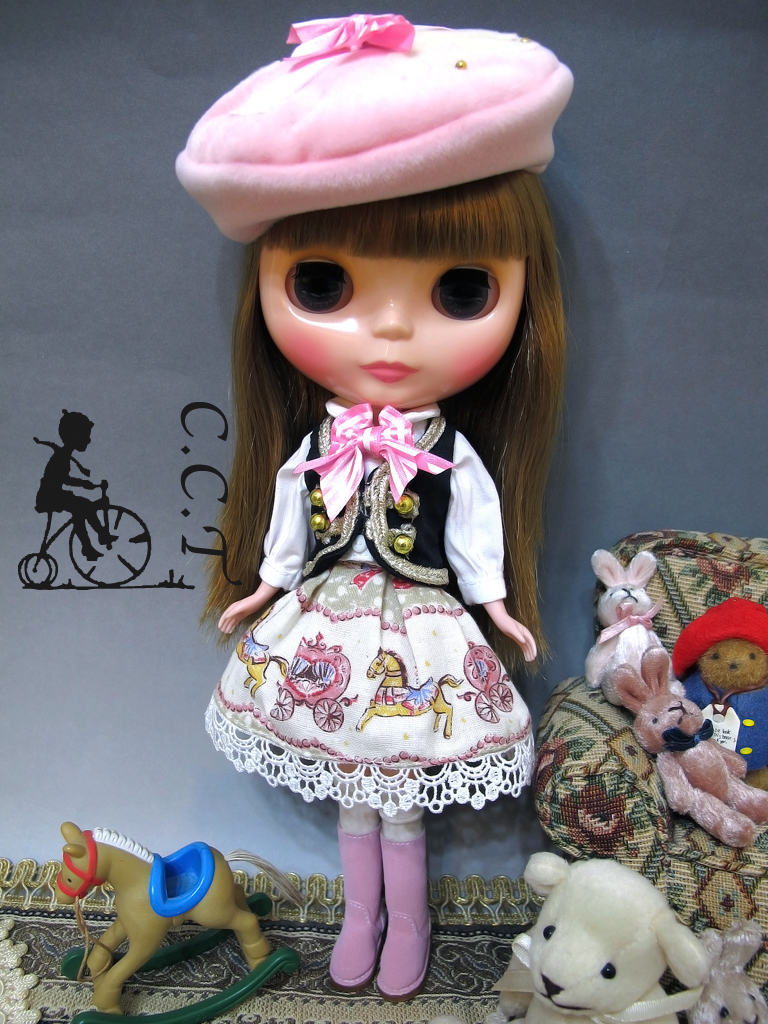 neo Blythe dress set "merry go round" (pink hat, long sleeve white shirt with ribbon, black vest with golden trim and pumpkin carriage print skirt ) Total 4pcs in this items We accept payment by PAYPAL, VISA and WESTERN UNION Thank you. Please don't hesitate to contact us at cctoyshop@yahoo.com.hk if you have any question about this product.