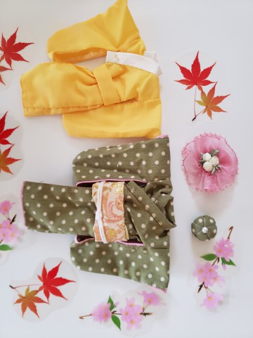 Kimono "green w/ polka dots" (head accessories x 2, yellow base kimono, green kimono, belt) Total 5pcs in this item We accept payment by PAYPAL, VISA and WESTERN UNION Thank you. Please don't hesitate to contact us at cctoyshop@yahoo.com.hk if you have any question about this product.